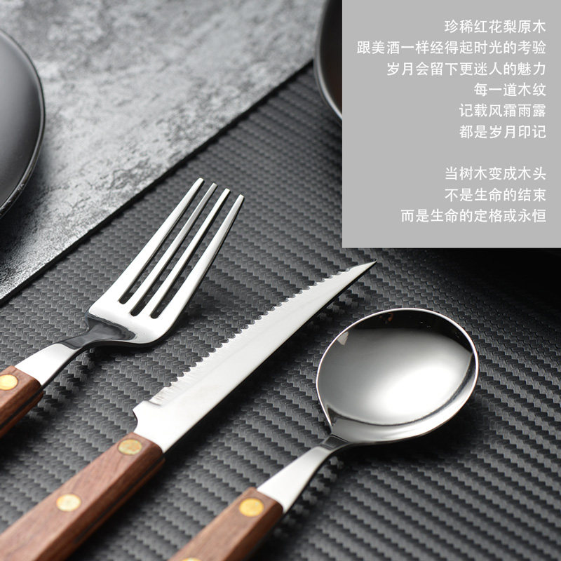 Festive Flowers Pear Solid Wood Western Dining Knife Fork Spoon 304 Stainless Steel Western Dining Cutlery Sets Home Wood Handle Knife Fork Spoon