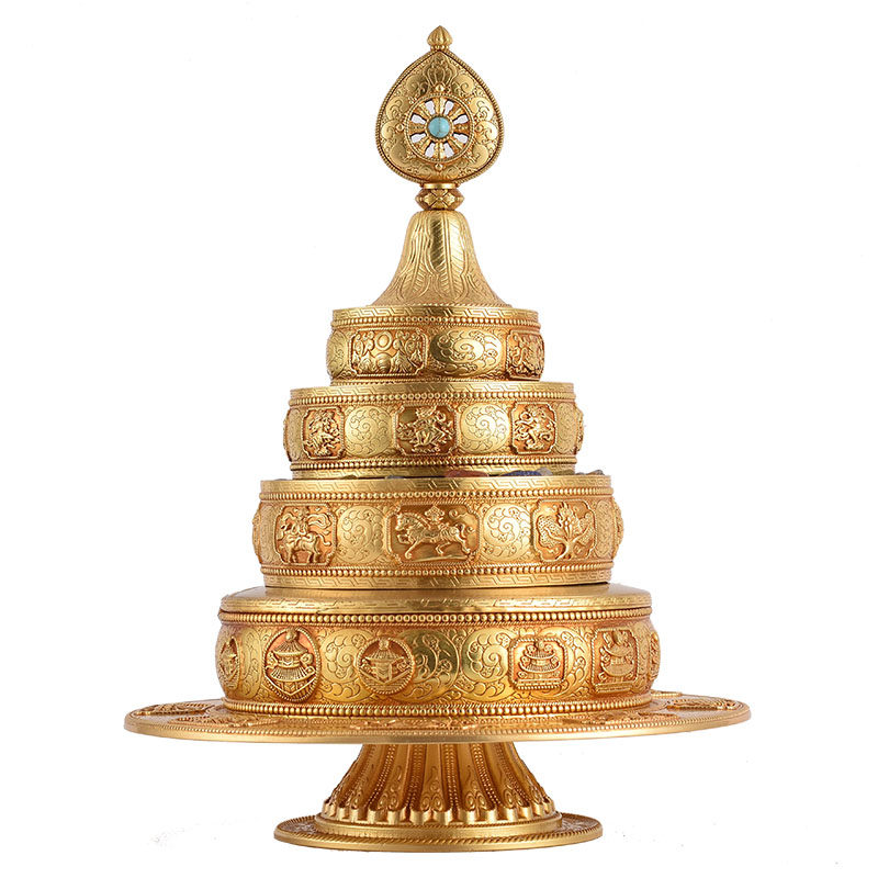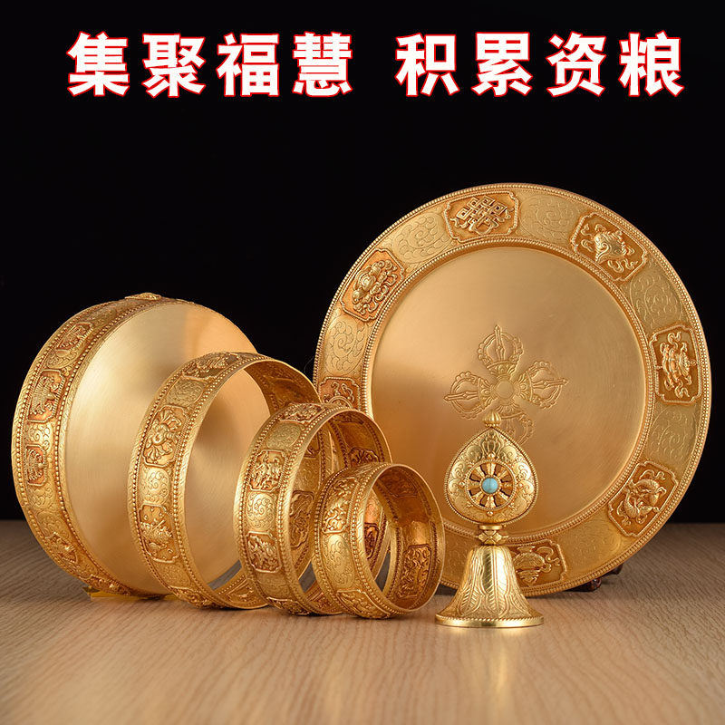 Tibetan-style Huibao pure copper Manzha plate imitating Nepal's eight auspicious carvings and thirty-seven piles of Manda repair plate for Mann tea