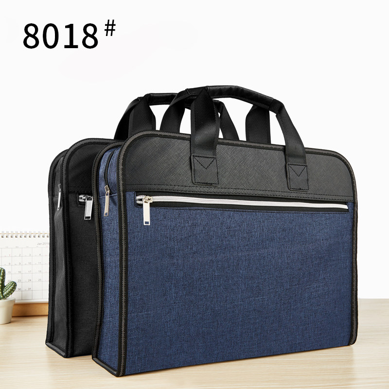 Handbag customized LOGO waterproof canvas A4 office zip bag large capacity for men and women multilayer materials bag briefcase meeting customized student papers collection bag bag tailored