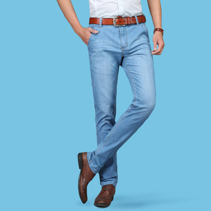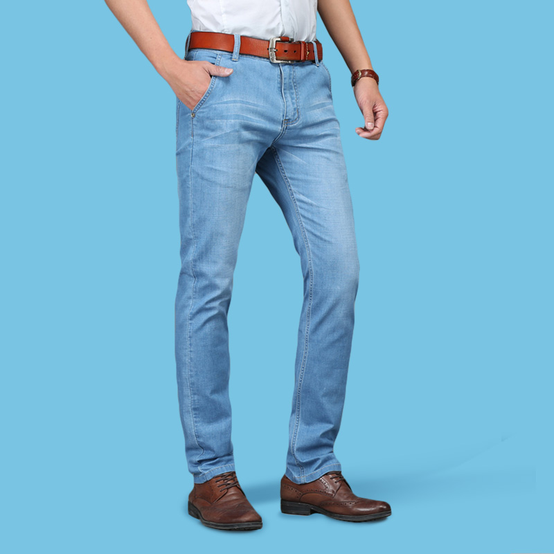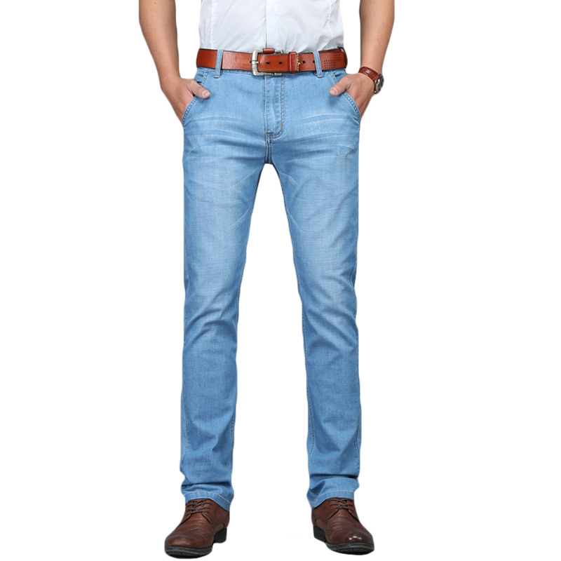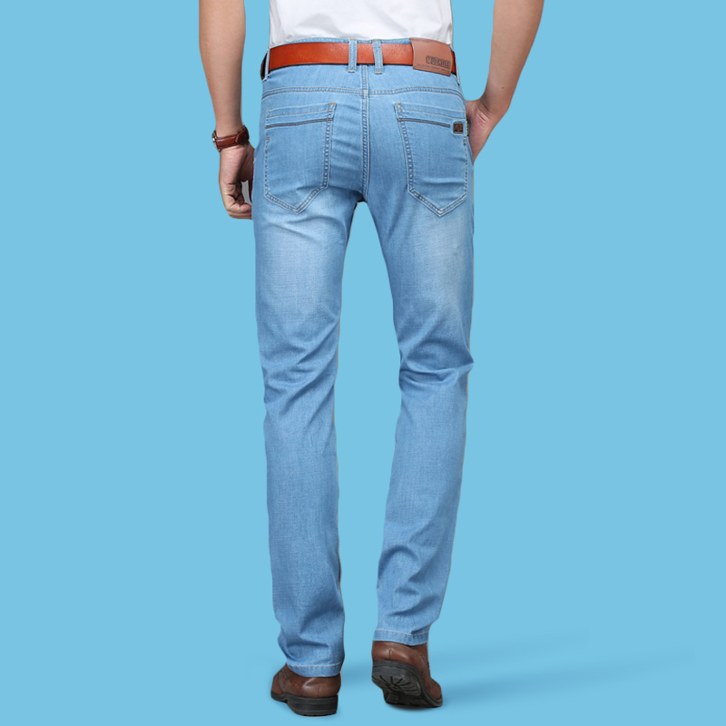 MUZHILEE Summer slim fit for men Jeans Ice Silk Light straight cylinder Business Chauleu Elastic Pants