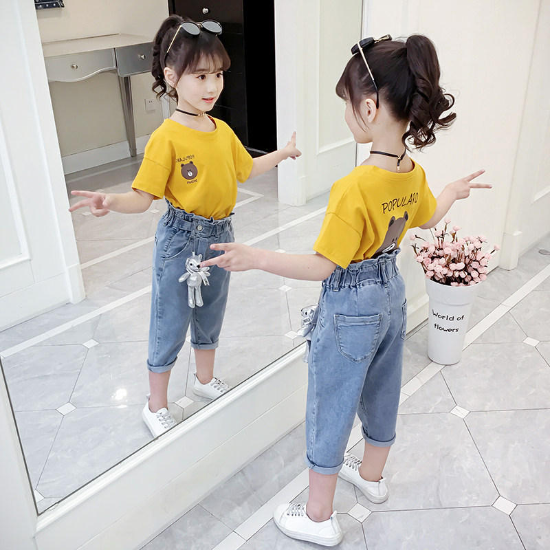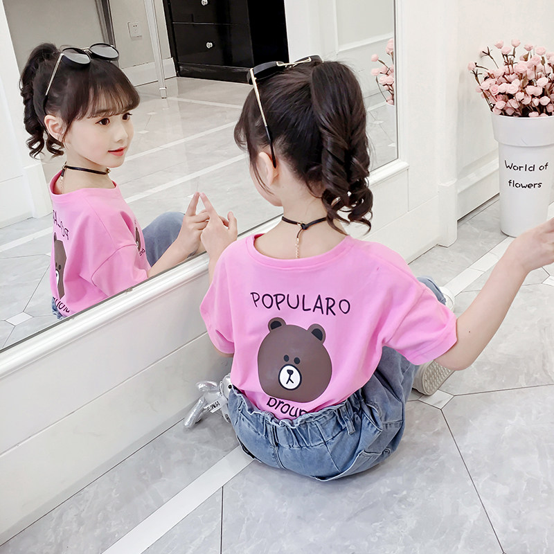 Girls T-shirt 2021 new summer cotton short-sleeved children in large children loose casual stretch fashion foreign style blouse