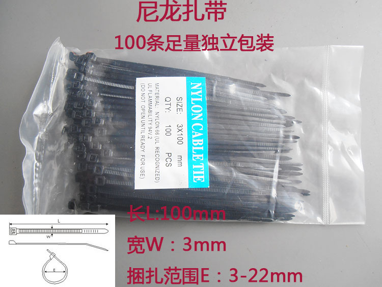 Black nylon cable tie Desktop computer installation repair cable Main shell cable management with plastic fixed lock