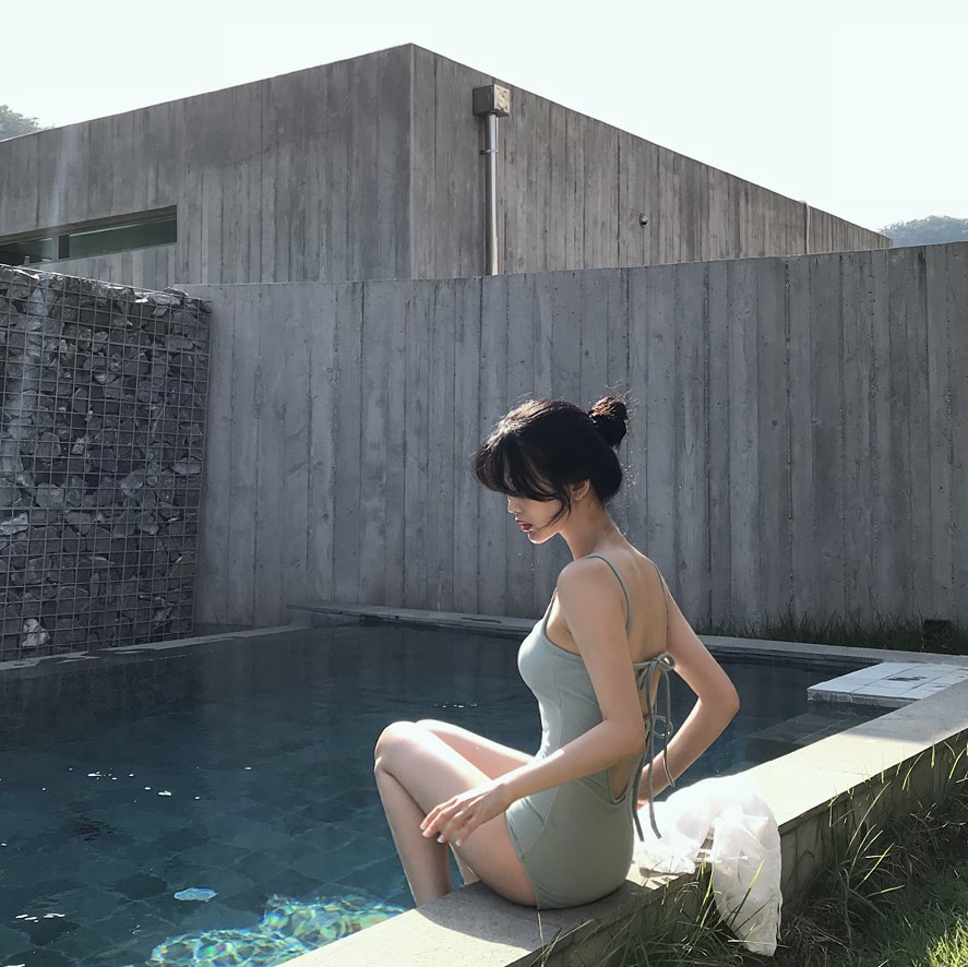 Miss rice flower swimsuit female hot spring ins style student fairy fan backless sexy slim cover belly conservative conjoined piece