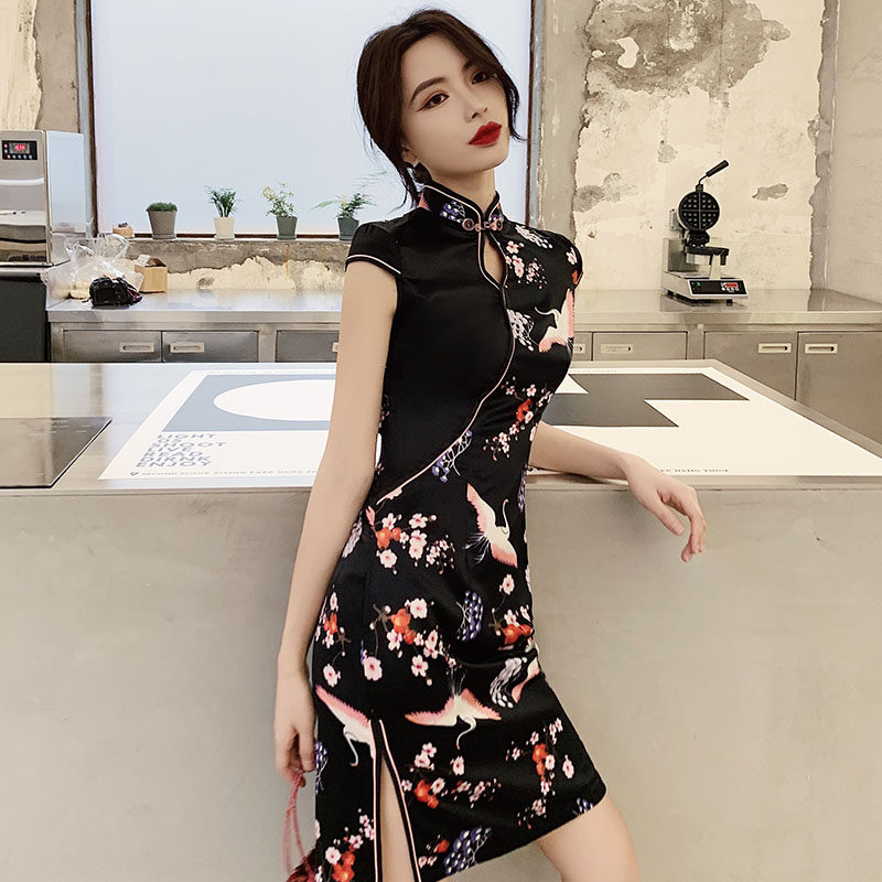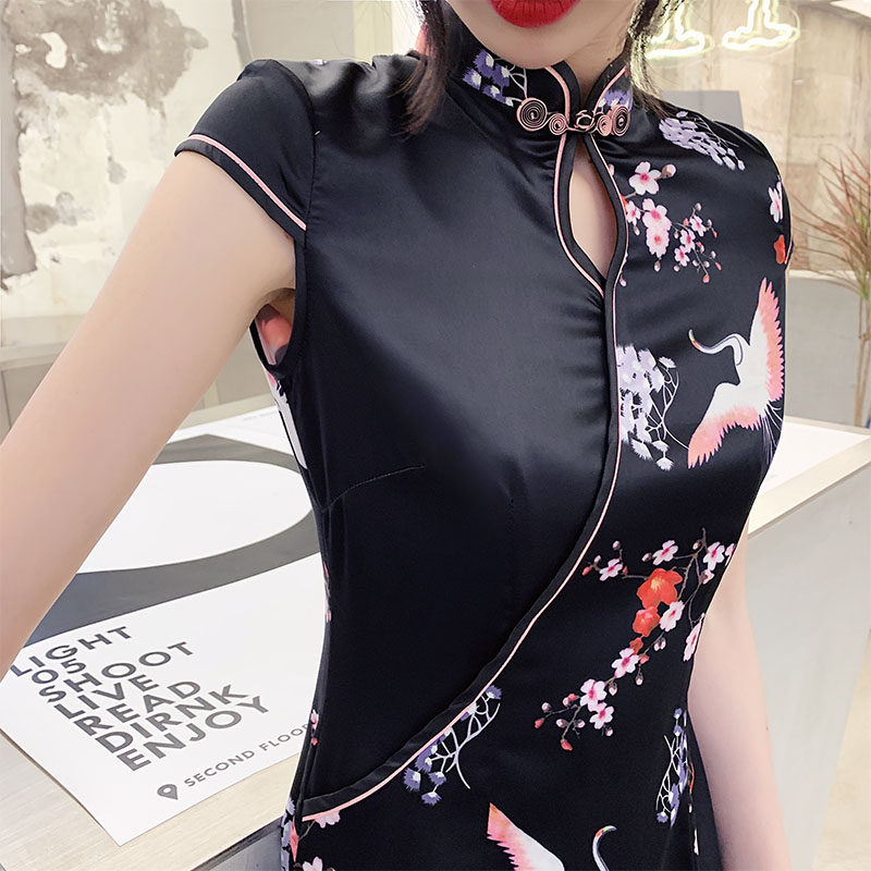 Black silk * Xianhe fan silk·Xianhe Black-necked crane Dragon and phoenix colorful dragon and phoenix dancing dragon and crane Navy blue dragon and crane Dark summer autumn chrysanthemum TZM