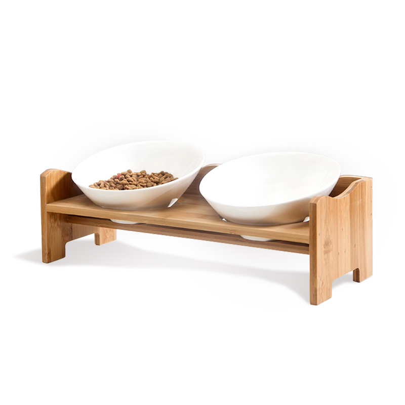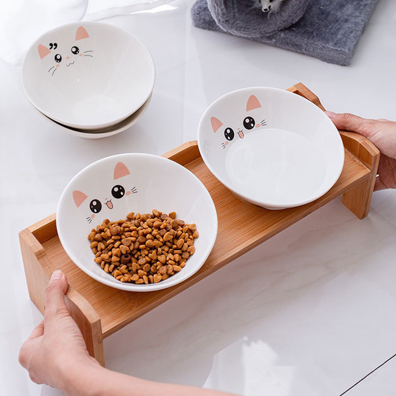 Meta Gas Meow -- Ceramic Cat Bowl Protection Cervical Spine Double Bowl Solid Wood Bowl Rack Diagonal Stomp Flat Face Pet Bowl Cat Dog Drink Water Basin