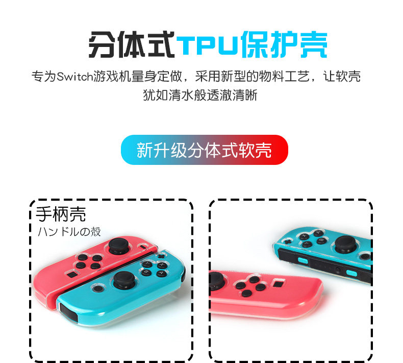 Apply Nintendo Switch Softshell transparent protective sleeve Switch shell NS transparent clean water soft shell TPU Softshell silicone Silicone Anti-Fall Accessories TPU Silicone Softshell Handle Protection