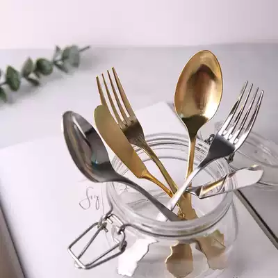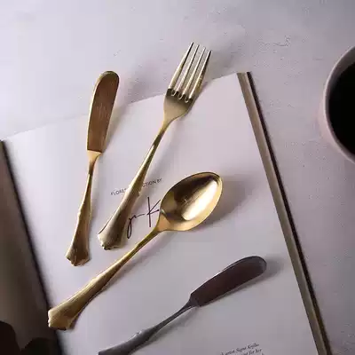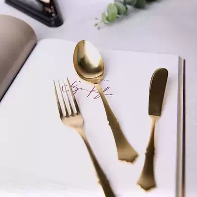 elfin Japanese knife and fork dessert set fork spoon three pieces home gold Western tableware Nordic style ins
