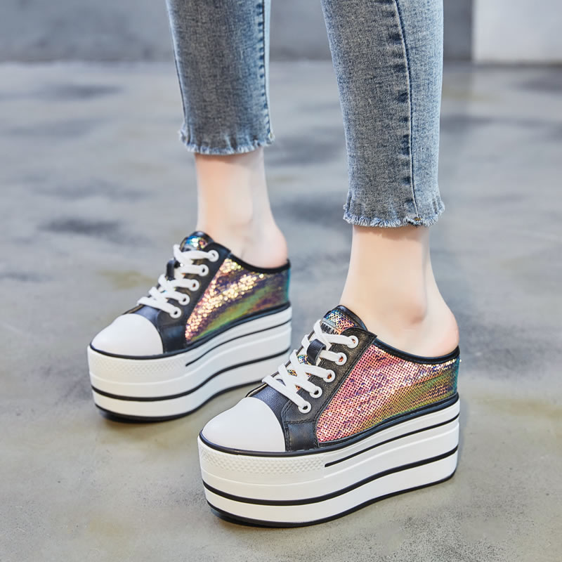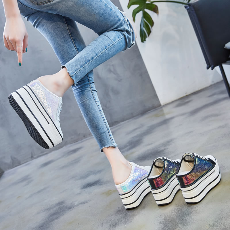 Ultra high heel Baotou Half slipper Women's thick bottom pine pastry outside wearing a foot pedal inside heightening 12cm No heel slippers