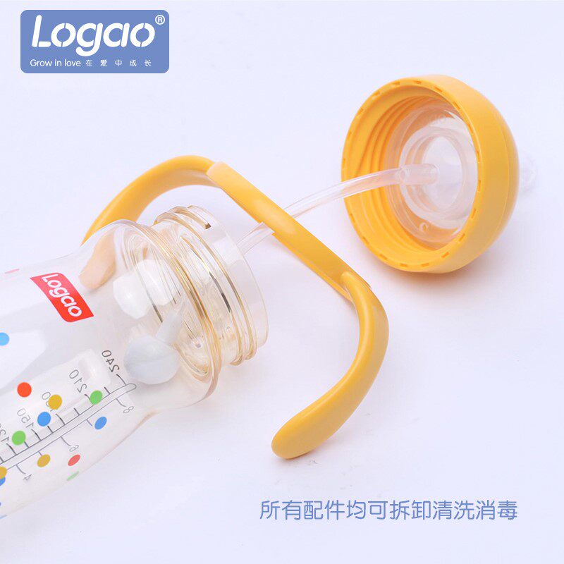 Logao milk bottle ppsu anti-flatulently baby bottle Big baby wide calibre Fall Resistant With Handle Straw