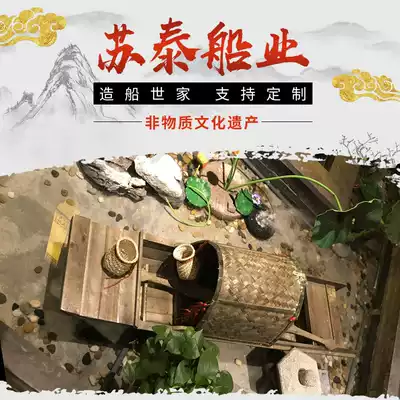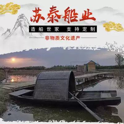 Antique new mainland China Wu tent landscape wooden boat catering boat Electric sightseeing tourist boat hand-rowed single tent boat