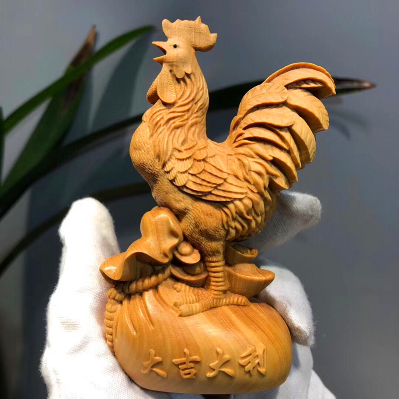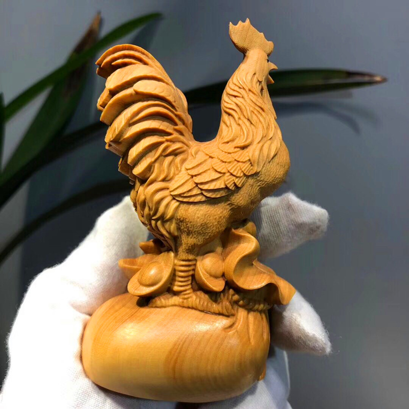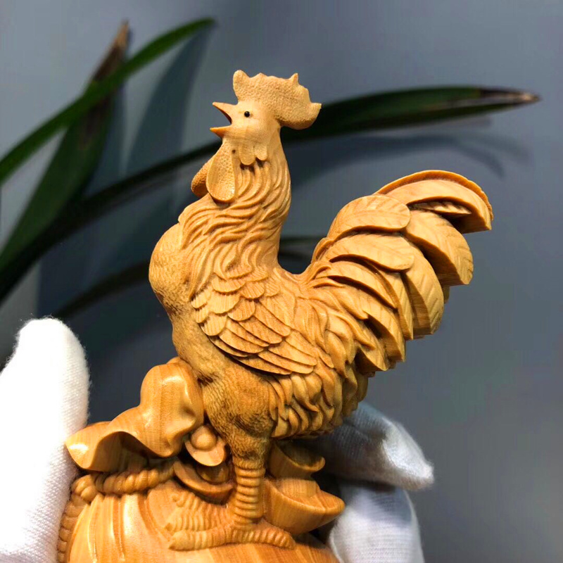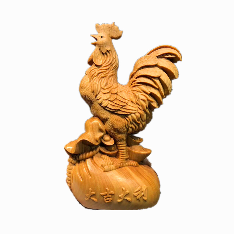 Wood Carving Small Leafs Yellow Poplar Wood Chicken Pendulum Pieces Fung Feng Shui Solid Wood Engraving Rooster Handicraft Duozodiac Chicken Furnishing-Taobao