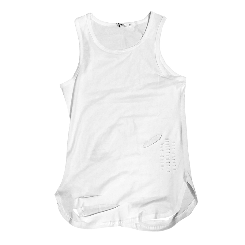 High street mourning beggars handmade knife cut hole lengthened hem white bottoming shirt vest men and women four seasons tide