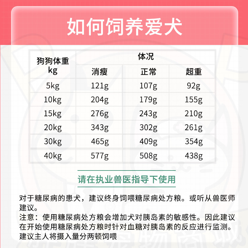 Food for the prescription of dog diabetes