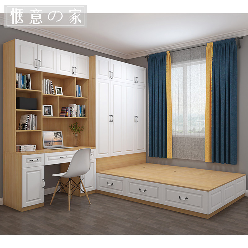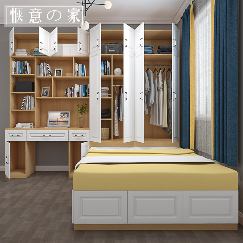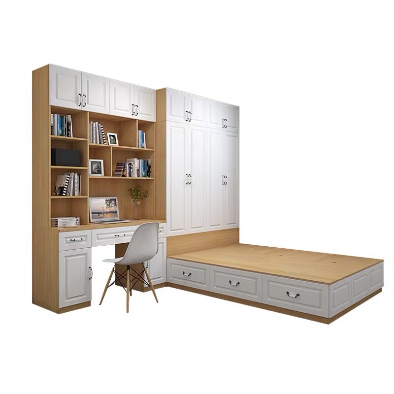 Tatami bed wardrobe one-piece modern minimalist bookcase desk Desk Computer Desk Combo children's room Small family beds Customized