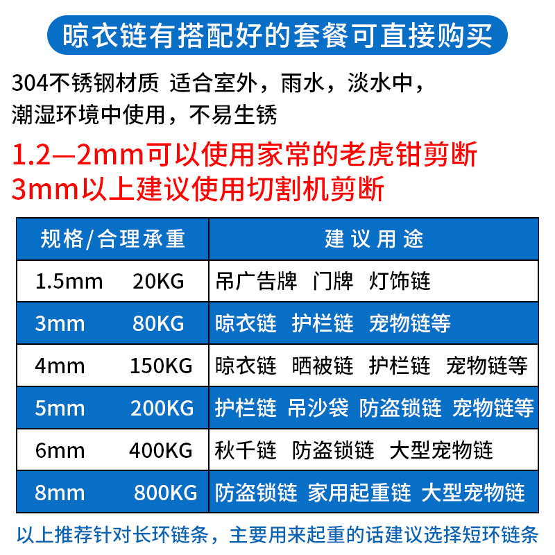 304 Stainless Steel Chain Plus Coarse Length Safety Chain Pet Chain Lifting Chain Sub Guard Rail Industry M1 2-M10