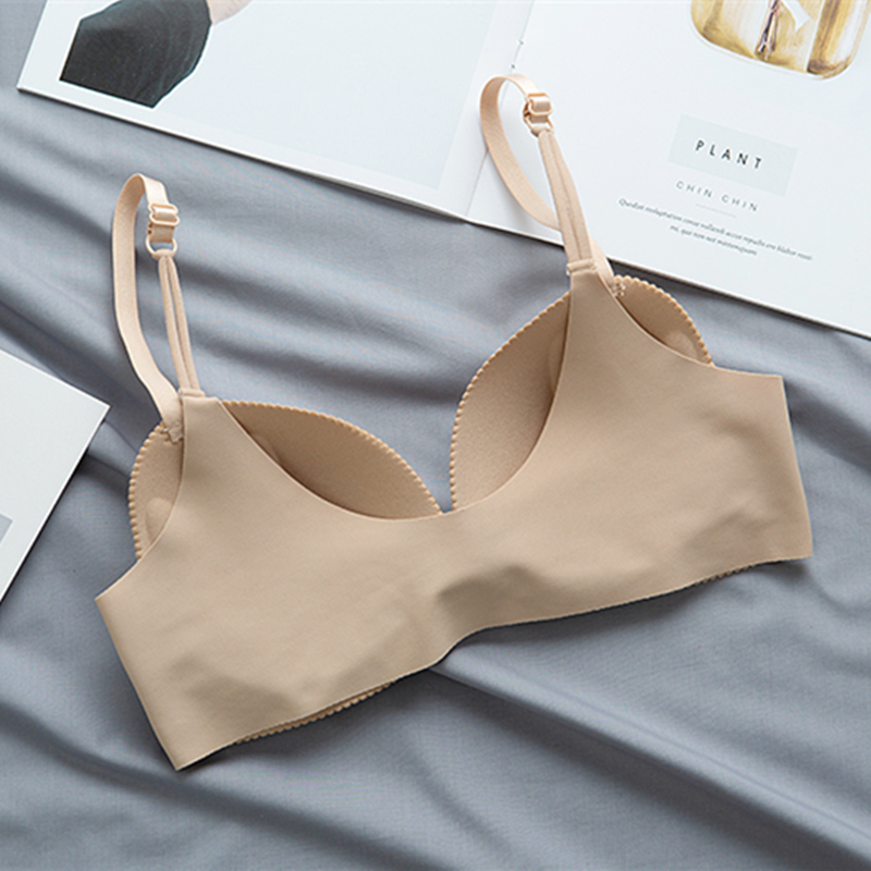 Sexy front buckle beauty back incognito underwear girls without rims gather thin cup bra side side milk small bra