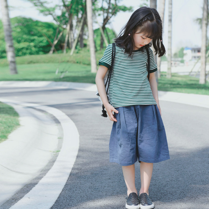 T-shirt pants suit light green striped T-shirt blue dress pants