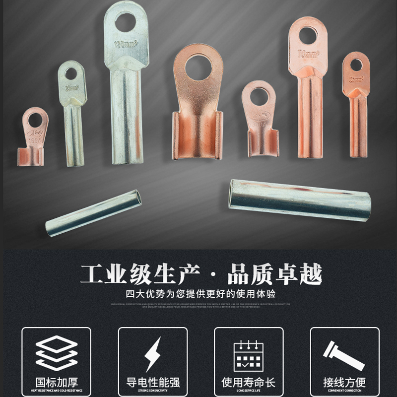 National standard copper wire ear nose nude terminal copper connector copper wire ear positive copper straight opening wire ear copper aluminium wire ear