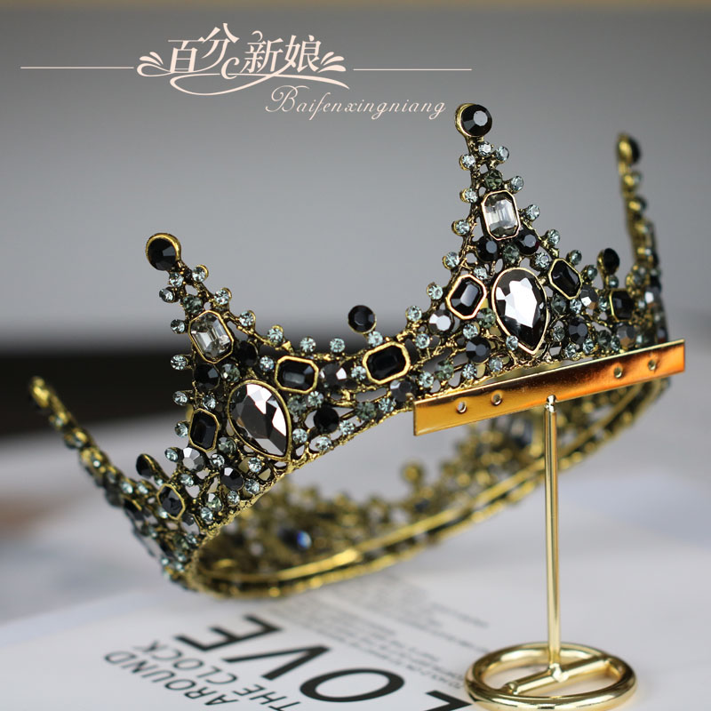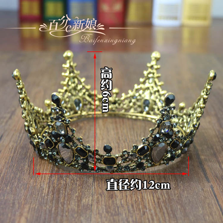 Black Bridal Crown Tiara Halloween Baroque Round Crown Princess Crown Veil Prom Banquet Birthday Crown