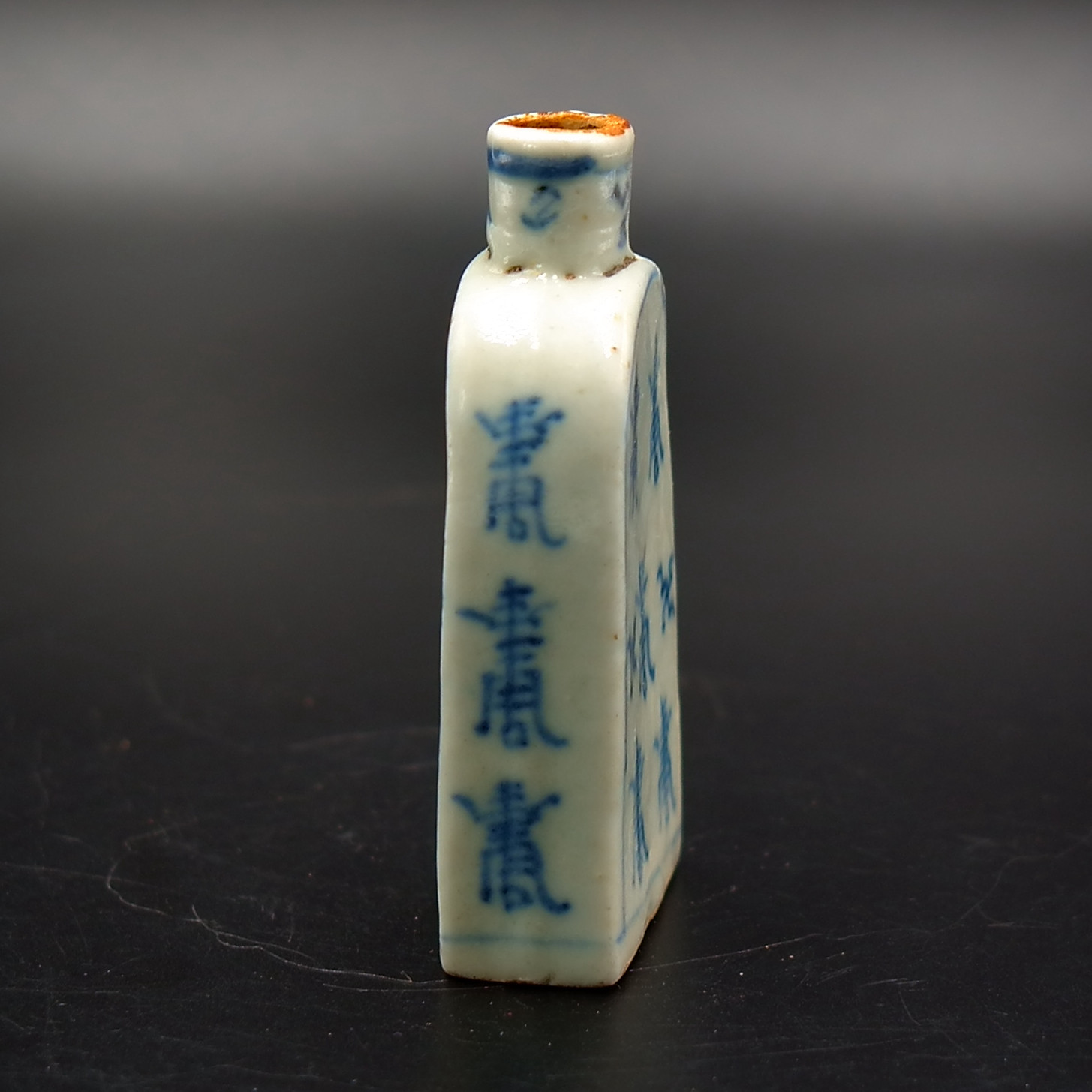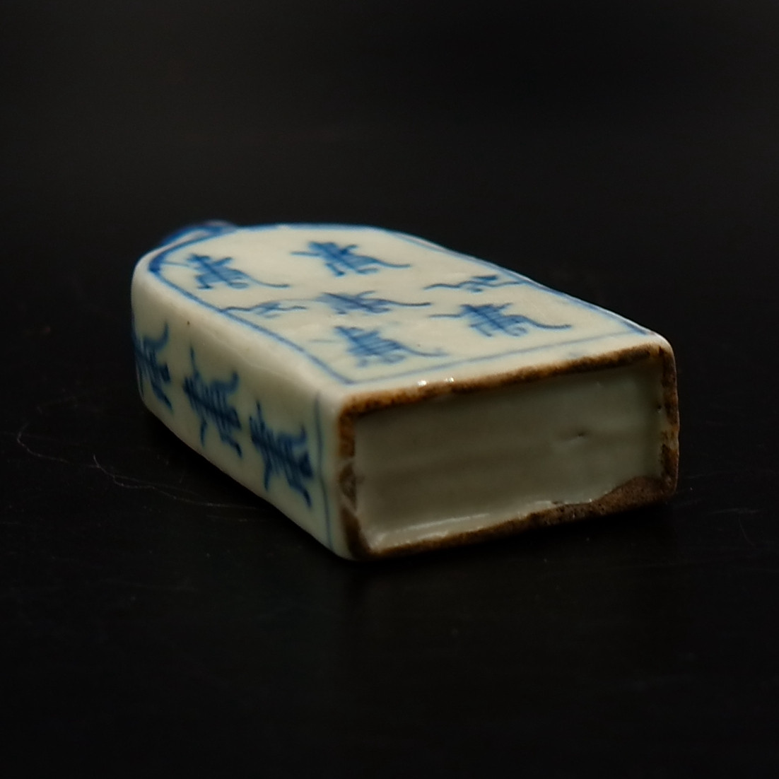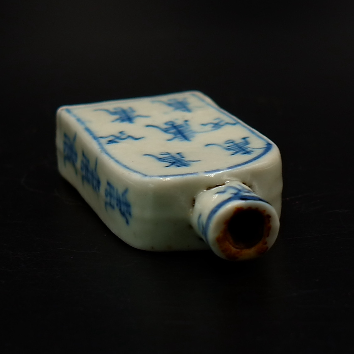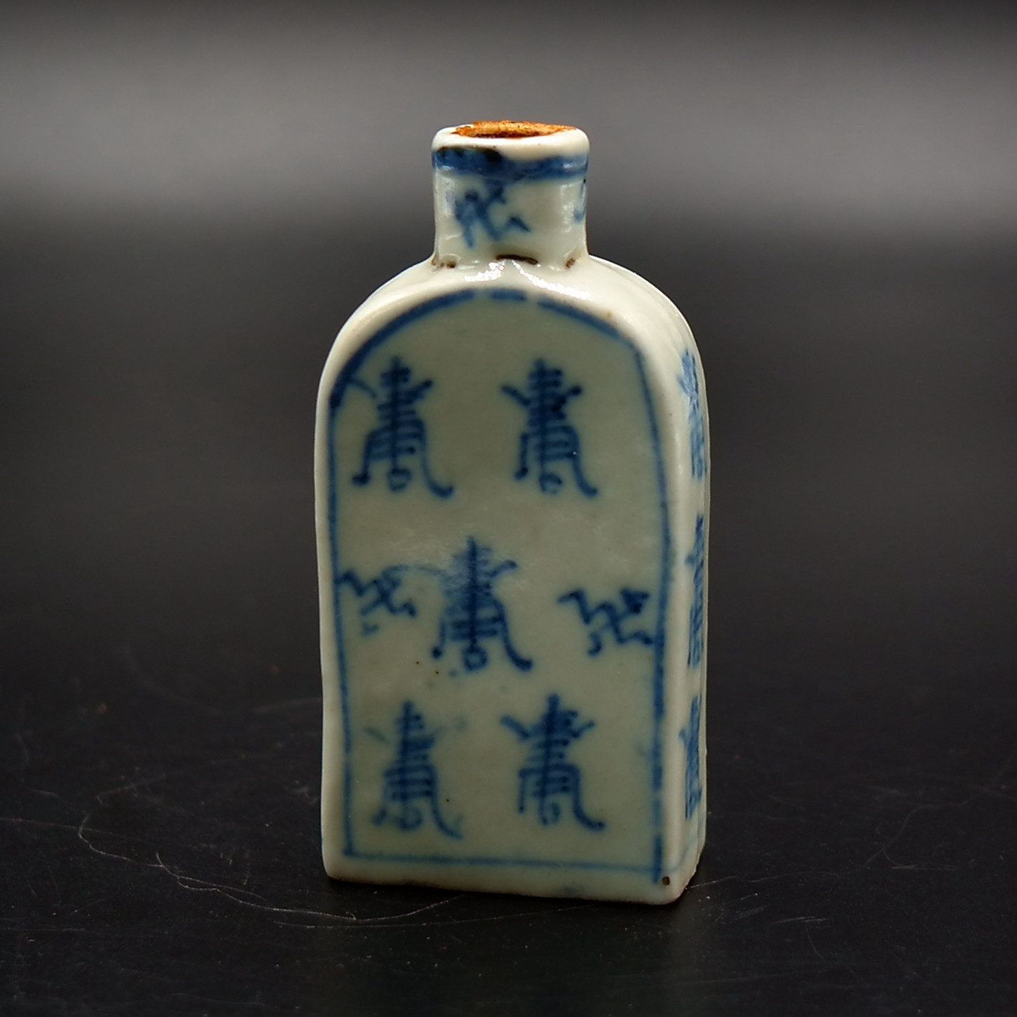 Tune, Qing Dynasty folk kiln blue and white seal script Shouzi snuff bottle porcelain ceramic literati porcelain art collection