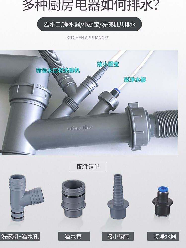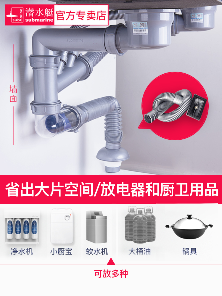 Submarine washbasin sewer pipe wall-mounted single-slot kitchen drain pipe double-slot washbasin sink sewer fittings