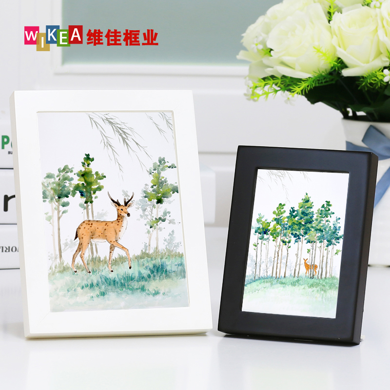 Solid wood photo frame table hanging wall ins creative 6 inch five inch ten inch personality cute photo wood color simple picture frame