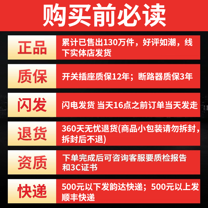 Five-hole socket (two or three plugs) - matte surface oblique five-hole (electrician recommended) - hardcover hao white oblique five-hole - 100% Five-hole with open single control (only control socket) five-hole with open double control (can control the lamp) five hole with USB - - frosted surface 16A three holes (air conditioning water heater) - frosted surface 16A three-hole belt open - - frosted surface 10A three holes - frosted surface 10A three hole with open - frosted surface four-hole socket - frosted surface one open single control (1 open or single open) frosted surface two open single control (2 open or double open) frosted surface three open single control (3 open) - frosted surface four open single control (4 open) - frosted surface one open double control - frosted surface two open double control - frosted surface three open double control - frosted surface four open double control - frosted surface four open double control - frosted surface halfway switch (1 open 3 control). )-Matte surface alarm switch--Frosted surface computer socket--Frosted surface two-digit computer--Frosted surface TV socket--Frosted surface telephone socket--Frosted surface TV computer--Matte surface telephone computer--Matte blank panel (whiteboard) --Matte face oblique five-hole belt open--Hardcover five-hole usb-hardcover 16A three-hole socket-Hardcover 16A three-hole belt opening-Hardcover version 1 opening single control-Hardcover version 1 opening double control-Hardcover version 2 opening single control- Hardcover version 2 open double control - Hardcover version 3 opening single control - Hardcover version 3 open double control - Hardcover version 4 open single control - Hardcover version 4 open double control - hardcover halfway switch - hardcover computer socket - hardcover TV socket - hardcover TV computer - hardcover blank panel - hardcover white socket waterproof box transparent waterproof box