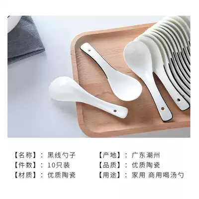 Black wire spoon, ceramic spoon, small soup spoon, creative household dining room tableware, soup and eating spoon, simple 10 sets