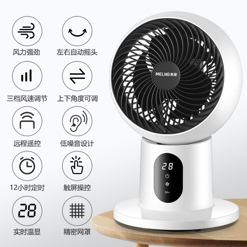Mearing Electric Fan Circulation Fan Home Turbine Air Convection Fan Stereo Shaking Students Mute Desktop Electric Fan