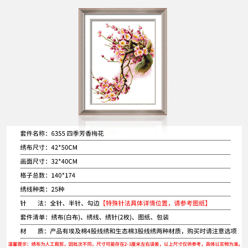 Cross embroidered 2022 new living room bedroom Chinese wind plum small flower small pieces handmade simple yourself