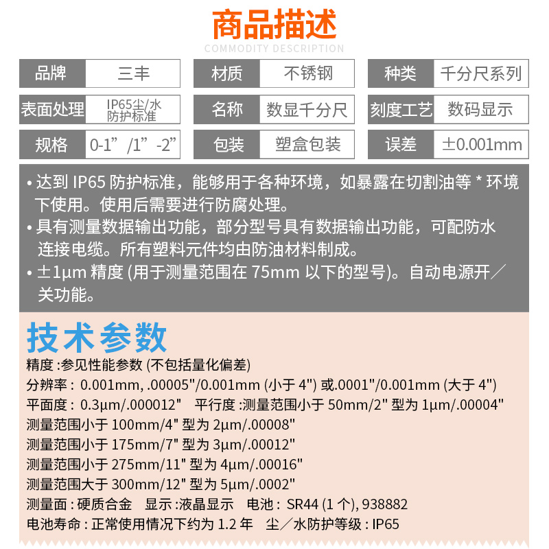 Japan Sanfeng Mitutoyo electronic number of outer diameter thousand feet 0-25mm high accuracy 0 001 293-240