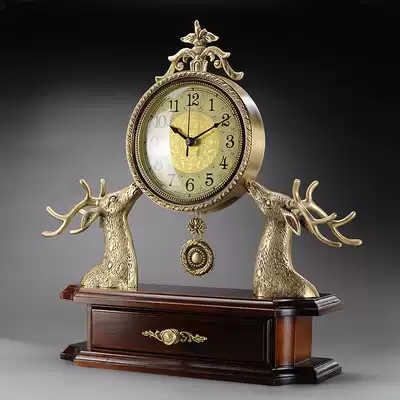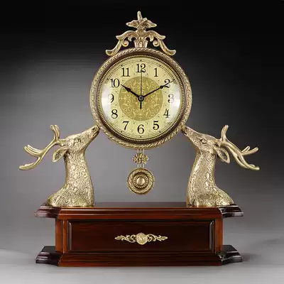 European living room clock creative pure copper clock ornaments retro desktop pendulum clock desktop luxury Fulu home clock