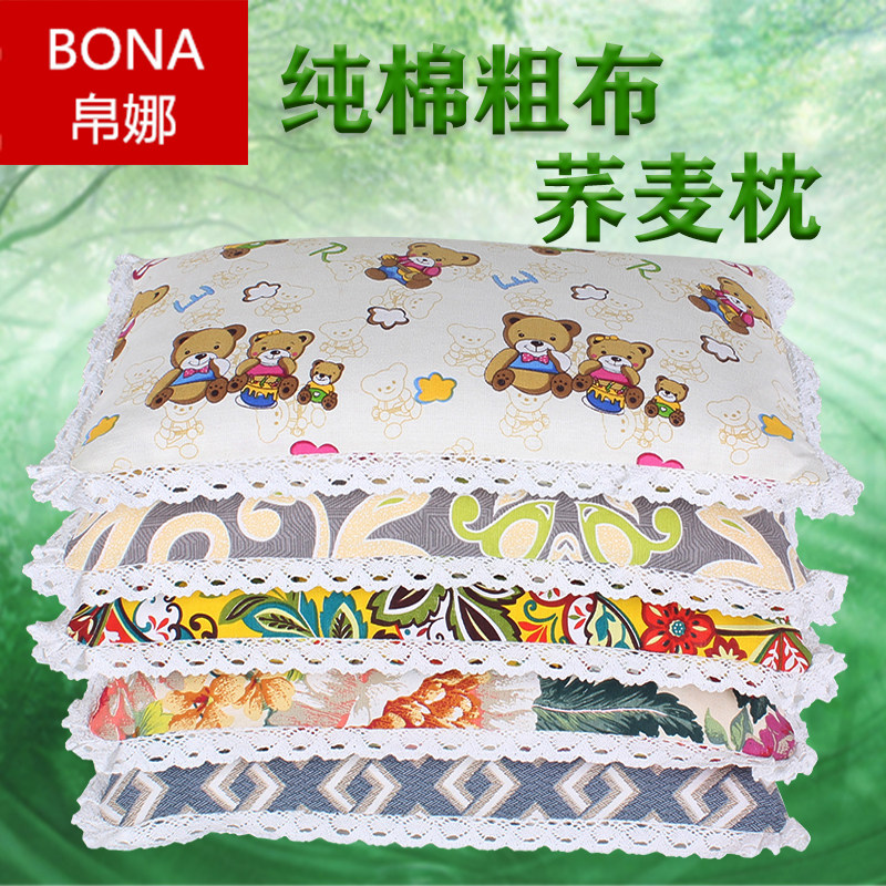 Bona children's pure cotton coarse cloth full buckwheat shell lace pillow single pillow children's cervical vertebra pillow buckwheat pillow