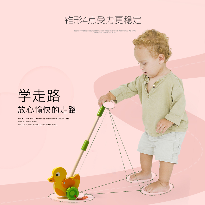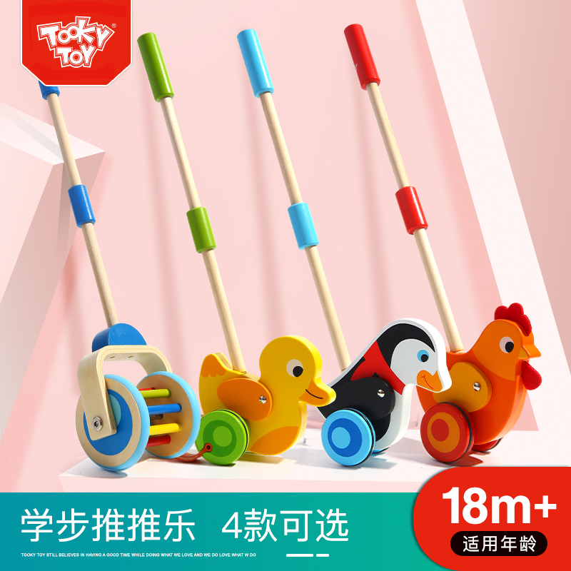 Children's single rod trolley wooden push toy Baby boy girl 1 year old baby toddler toy