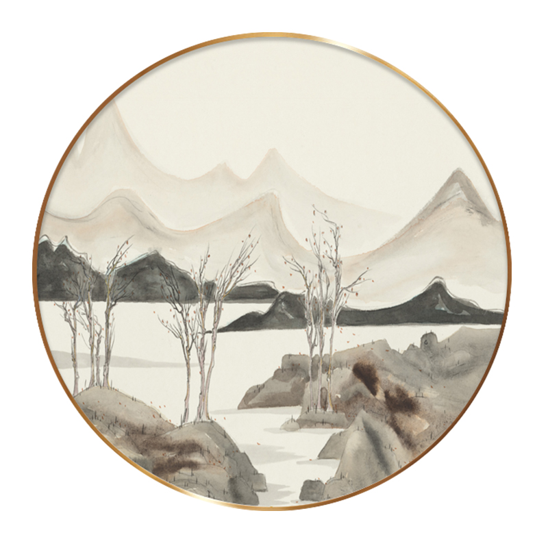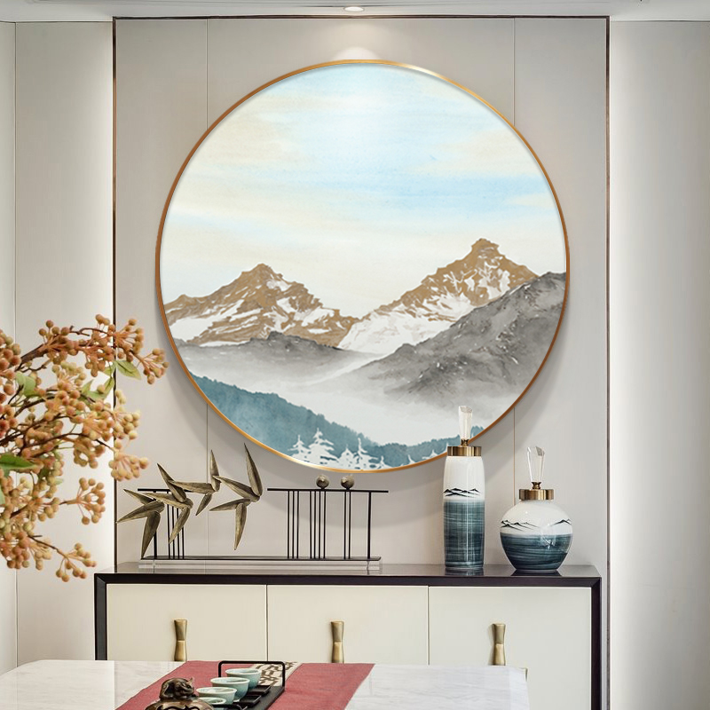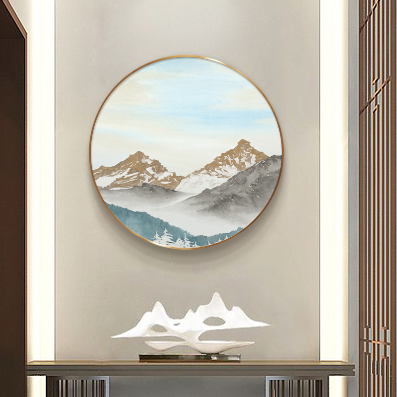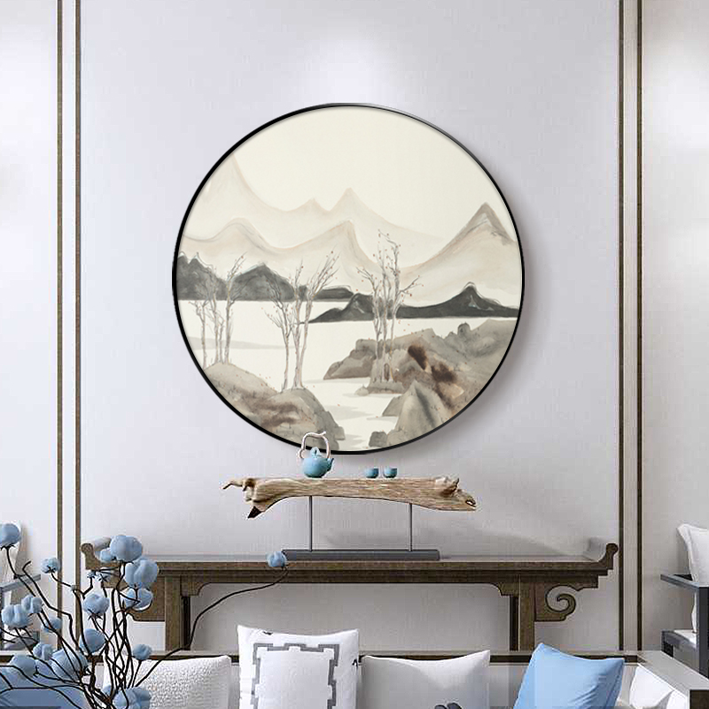 New Chinese Round Decoration Painting Zen with Mountain Entrance Door Wall Genguan Corridor Hung Painting Tea Room Bookroom Stairway
