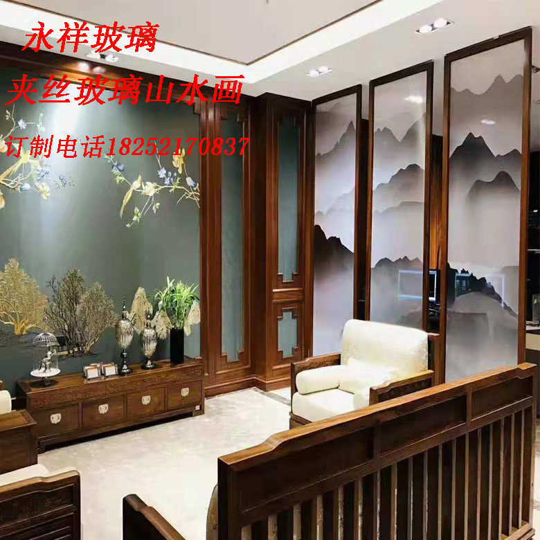 Ultra White Steel Clamping Silk Mountain Water Ink Painting Guest House Hotel Sales Department Art Partition Screen Shower Room Glass Manufacturer-Taobao