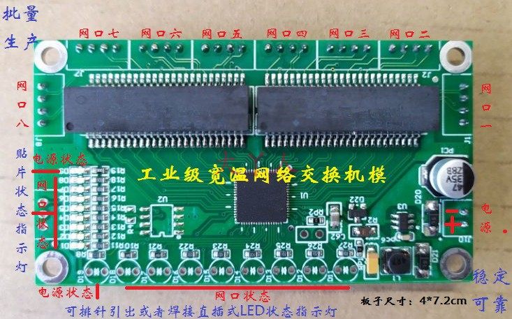 Industrial-grade wide temperature and low power consumption 8-port 6-port wiring extension cable mini-engineering micro-network switch module