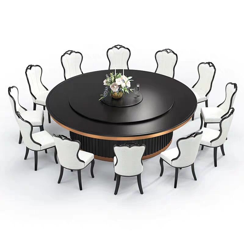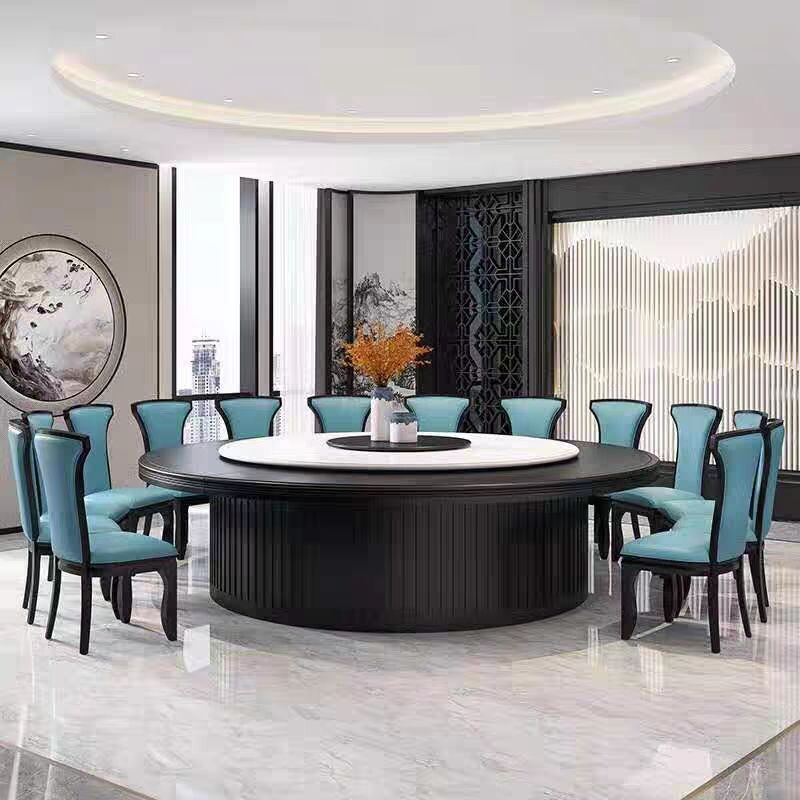 Hotel Electric Big Round Table 2 6 3 2 m Hotel Bag Compartment Glass Automatic Rotation 16 20 People Hotpot Dining Table And Chairs