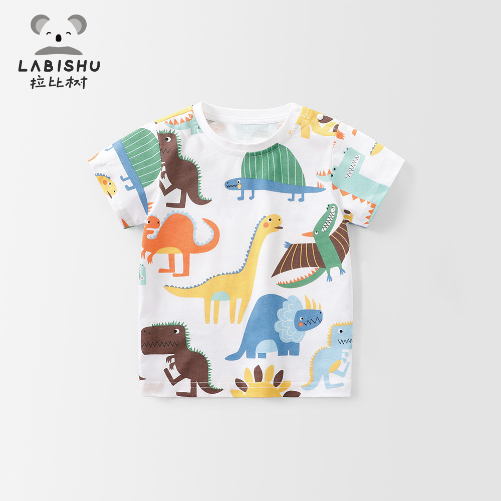 Rabi tree children's clothing 2021 new children's half-sleeve t-shirt baby summer clothes tide full printing top boys short-sleeved t-shirt