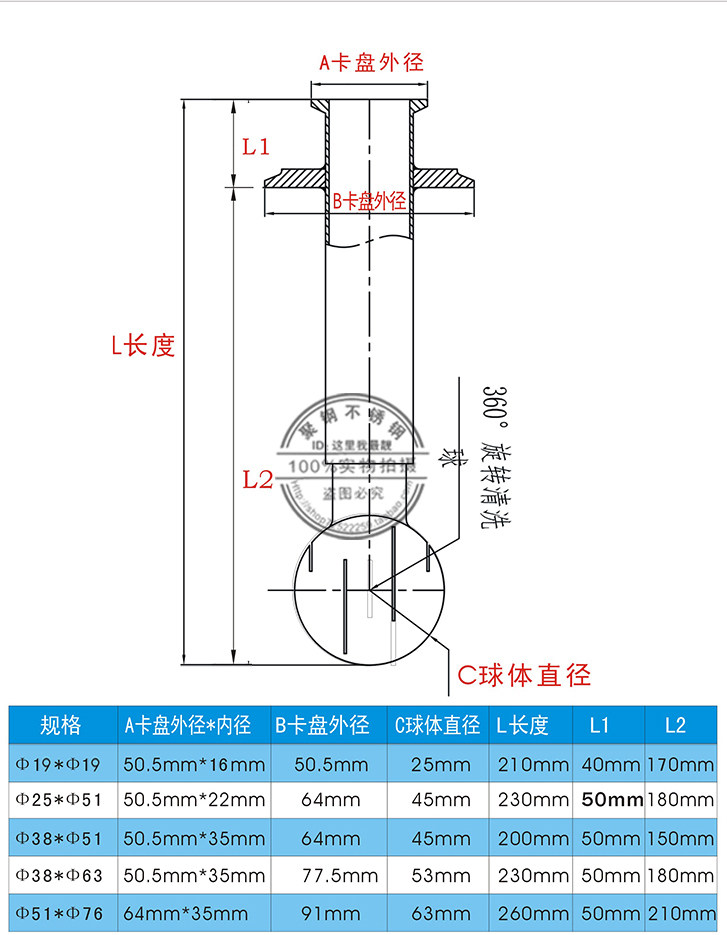 304 stainless steel dual chuck cleaning ball sanitary clamp type fast rotation 360 degree spray washer 316