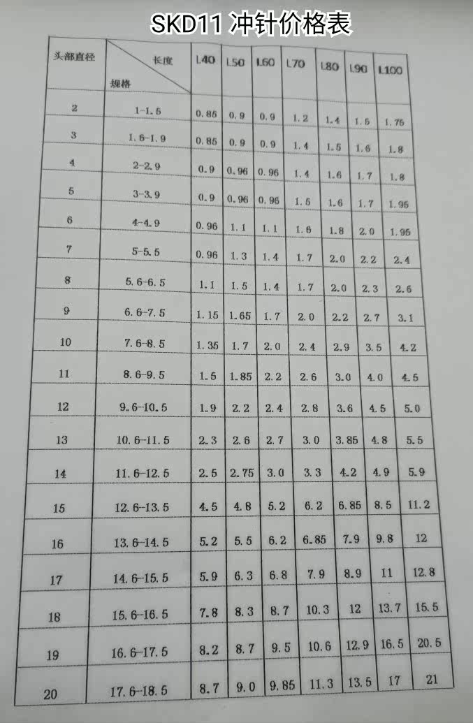 SKD11 punch T-rush mold accessories 1 5 2 5 5 8 5 6 6 5 5 7 5 8 2 9 5