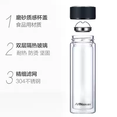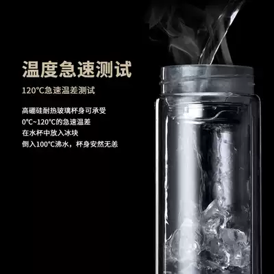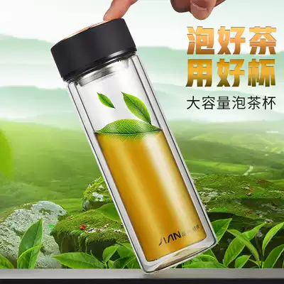 Fugang glass household large-capacity water Cup portable men and women Tea Cup double insulation tropical lid transparent cup