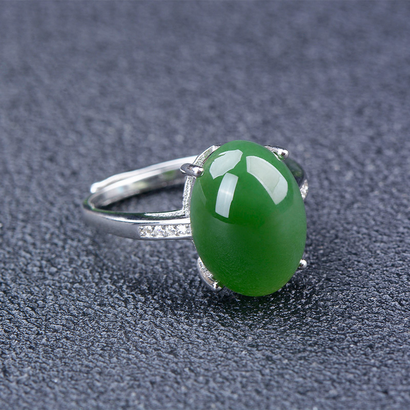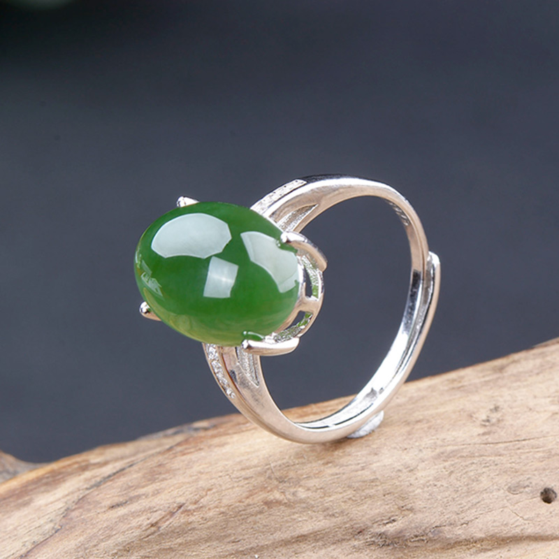 Natural Xinjiang and Tian Yubei jade ring finger ring finger spinach green man and woman jade ring tail ring