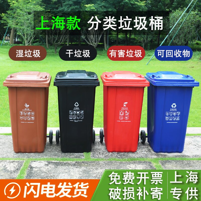 Four wheels 50L brown wet garbage four wheels 50L black dry garbage four wheels 50L red harmful garbage four wheels 50L blue recyclables four wheels 50L Grass green kitchen waste can hang