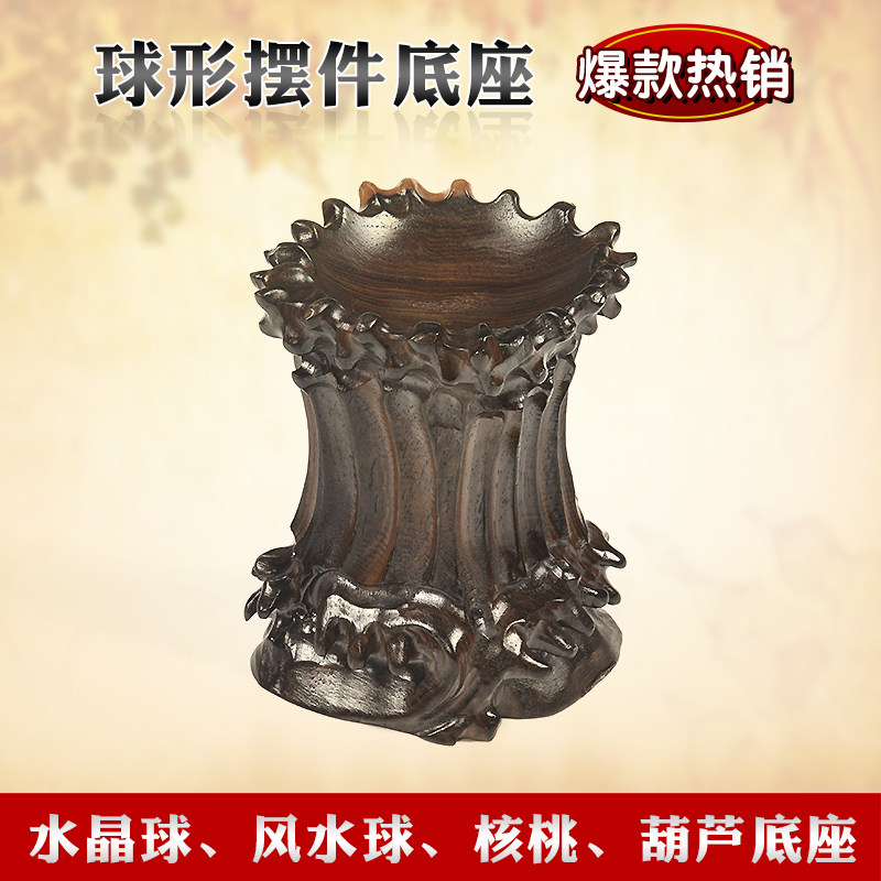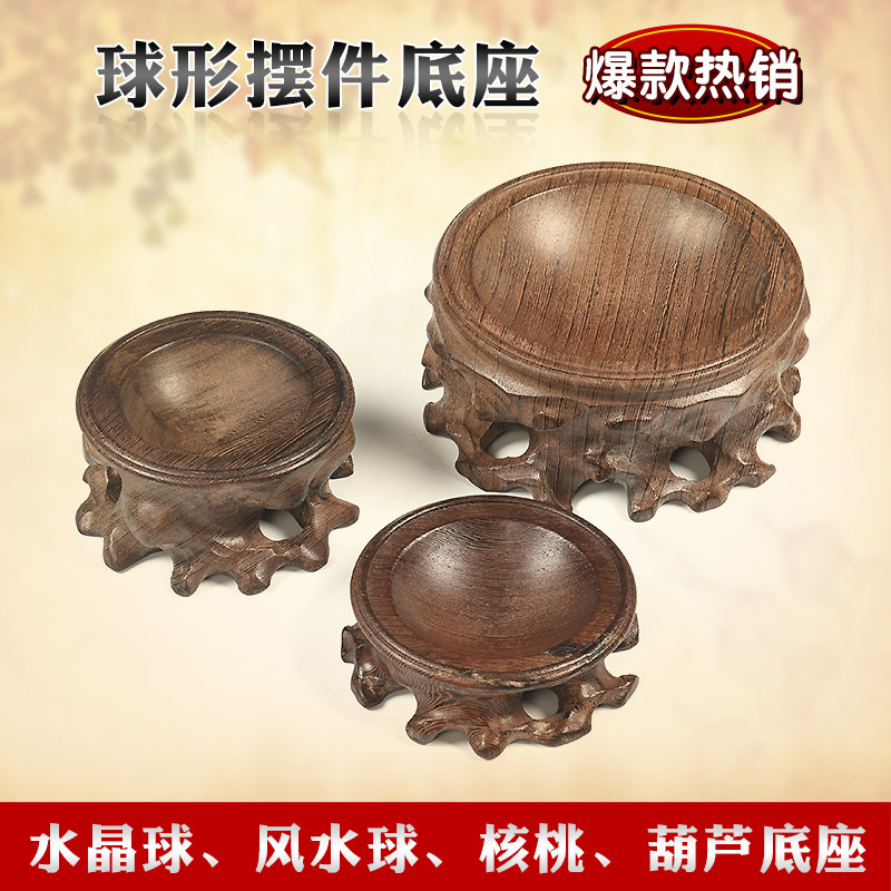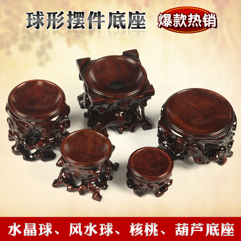 Red Wood Carving Feng Shui Ball Water Crystal Ball Base Egg Carving Gourd Night Bright Pearl Stone Walnut Arc Swing Piece Solid Wood Shelf
