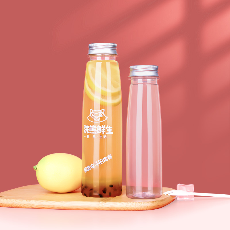 Disposable beverage bottle plastic transparent with lid food grade pet empty sour plum soup sago juice milk tea bottle
