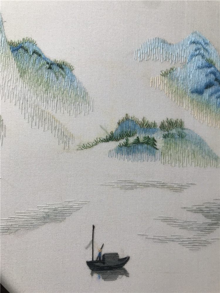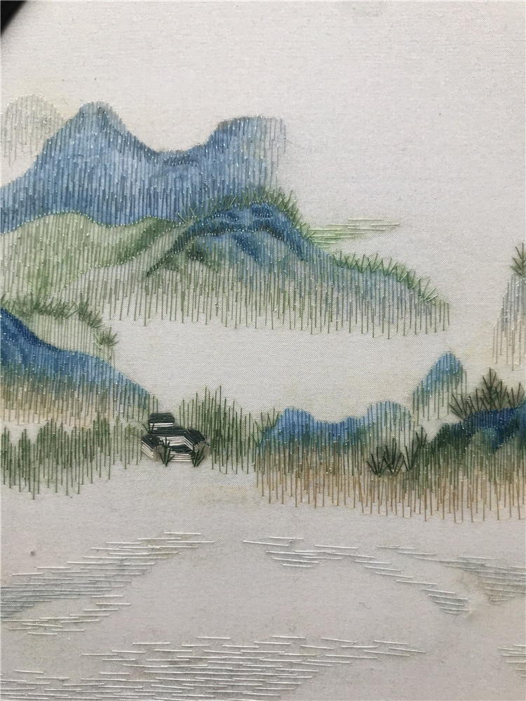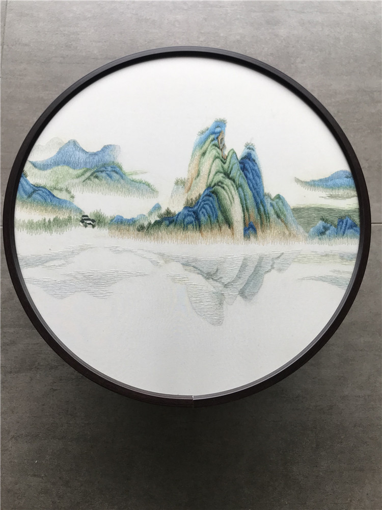 Shanshui Su embroidery silk round log decorative painting embroidery single-sided embroidery handmade silk framed good gift