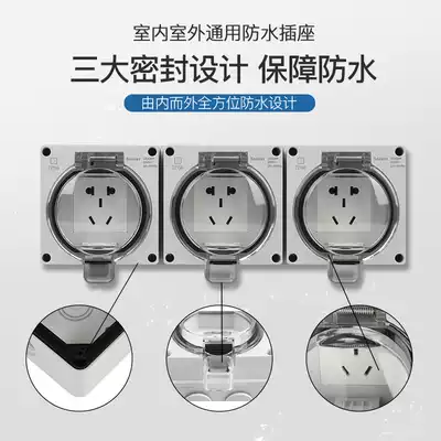 Outdoor waterproof socket Surface mounted three-position fifteen-hole socket Household power supply 15-hole socket outdoor rainproof waterproof box