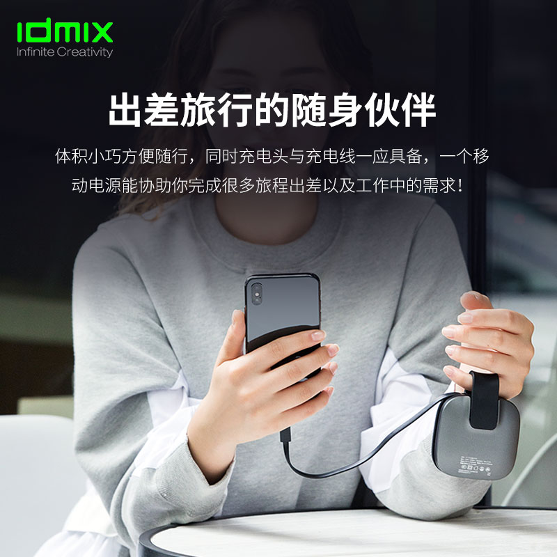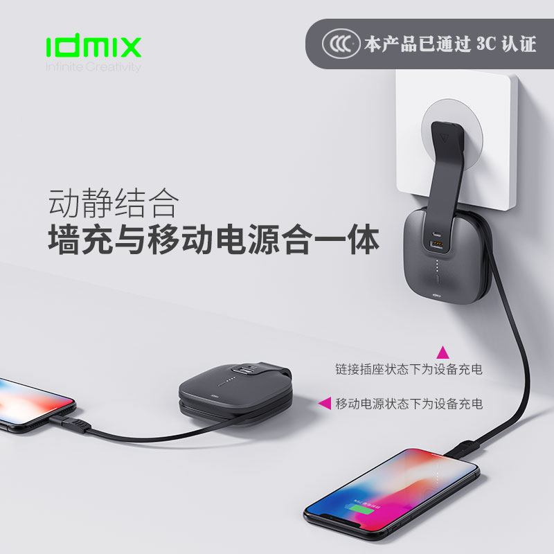 IDMIX comes with a plug three-in-one mobile charger comes with a data cable mobile power supply 5000 mAh mini convenient suitable for Apple's official MFi certification iPhone14 13 Huawei small