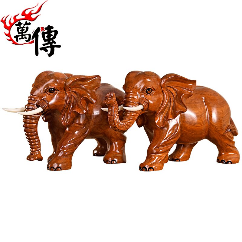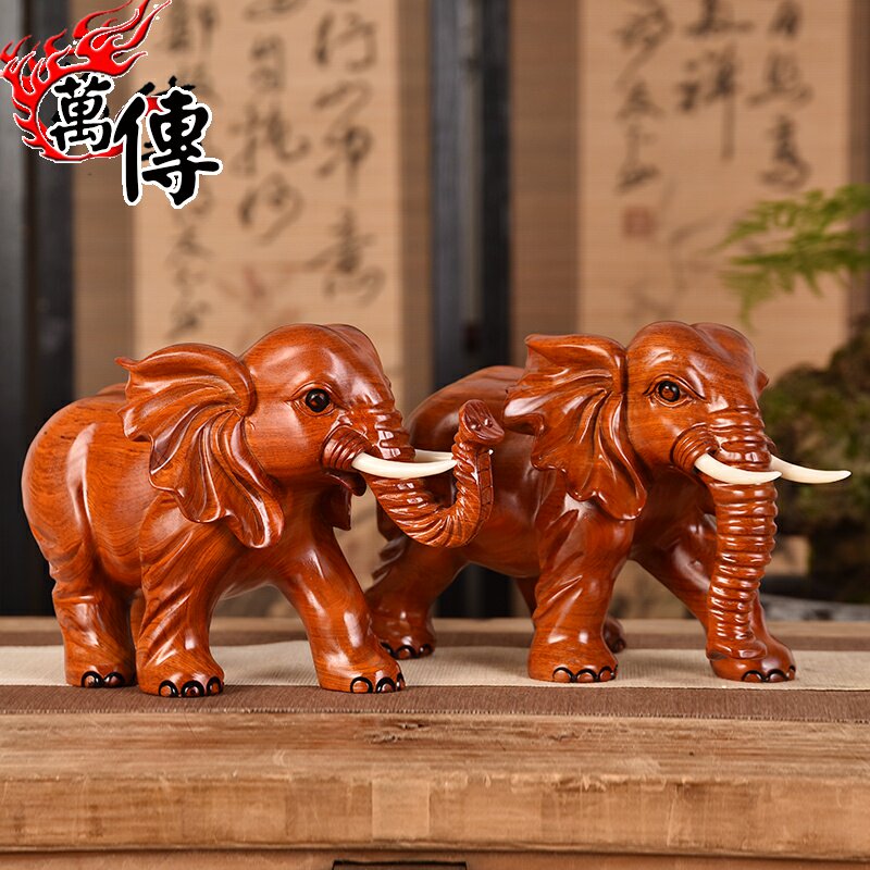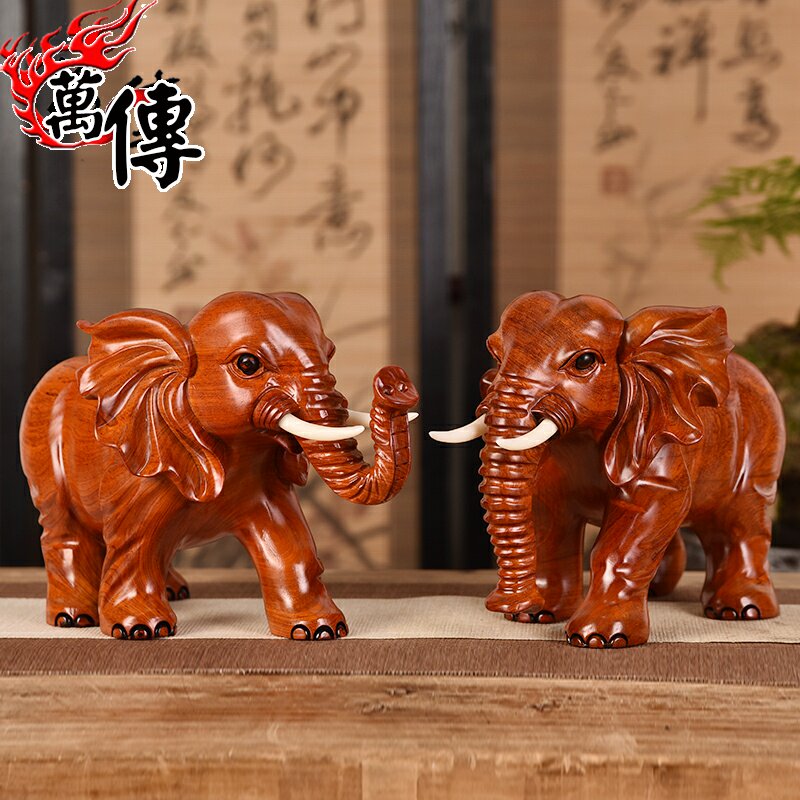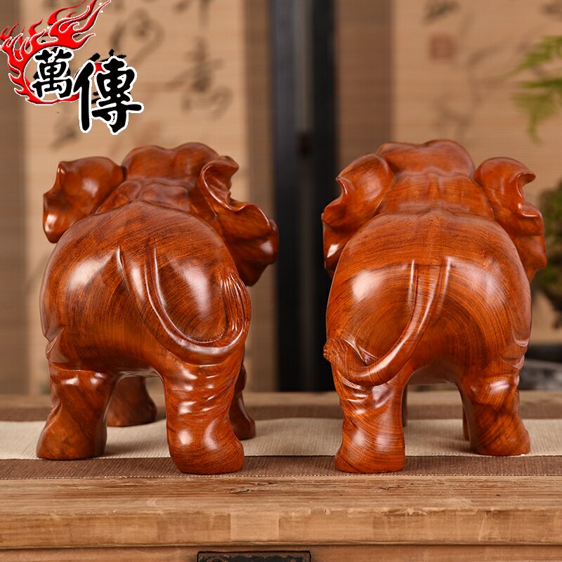 Wooden elephant fitting a pair of wooden household seating room decorations of red wood handmade wood carving crafts